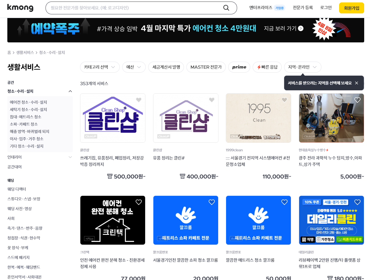 국내 최대 프리랜서 중개 플랫폼 '크몽'은 에어컨 청소 같은 생활 서비스 영역으로 사업 확대에 본격 나섰습니다.