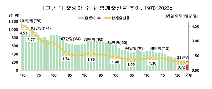 우리나라 합계출산율은 0.72명수준으로 OECD중 최하위입니다.
