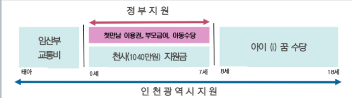 현재 정부와 지방자치단체가 매칭해 지원하는 부모급여, 아동수당, 초중고 교육비 등 7200만원에 인천시가 신설해 지원하는 2800만원을 더하면 총 1억원을 지원받을 수 있습니다.