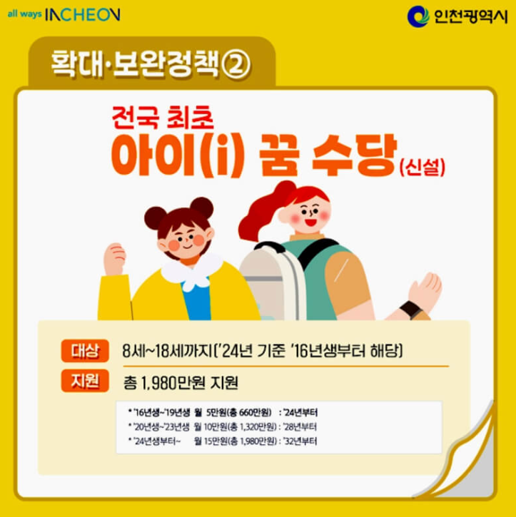 영유아기에 편중된 지원 정책을 18세까지 연장해 중단없이 지원하는것이 핵심이고, 혜택을 받을 때까지 인천에 거주하여야 합니다.