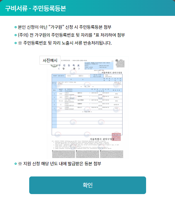 사회복지시설의 경우에는 주민등록등본대신 사업자등록증을 첨부해주시면 됩니다.