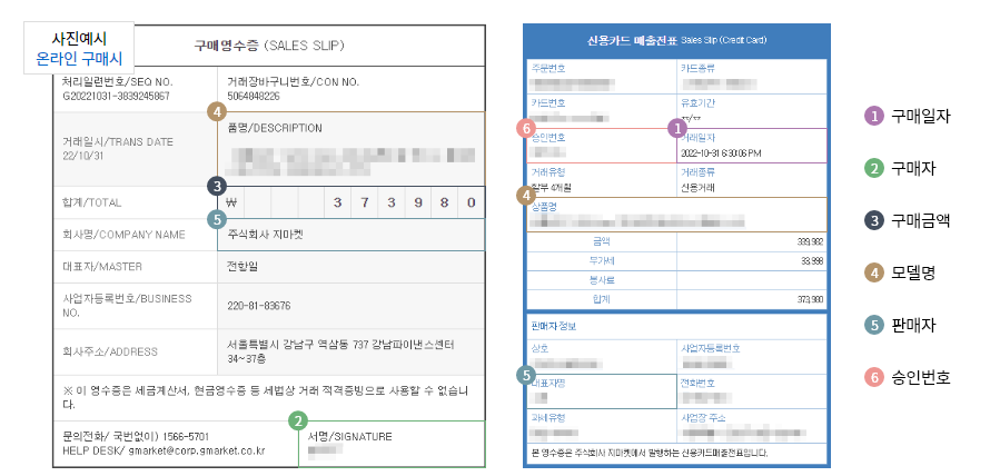 서류 : 신분증, 에너지 효율 라벨 사진, 제조번호, 거래내역서, 영수증, 주민등록 등본