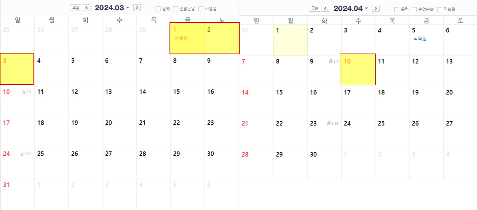 아직 24년도 10달이 남았습니다. 공휴일 및 황금연휴를 파악하여 남은 한해의 계획 다시한번 알차게 짜보는게 어떠할까요