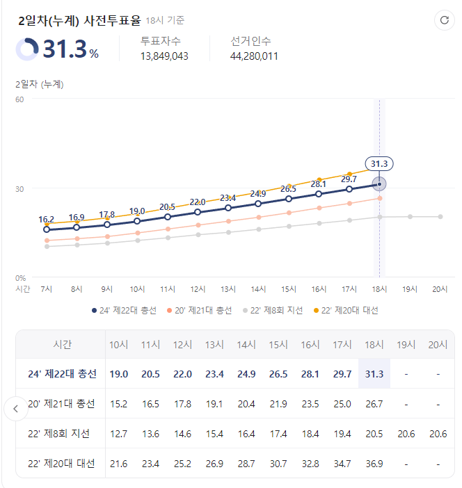 4년전 총선 보다 4.59%높아진 31.28%로 집계되었습니다.
