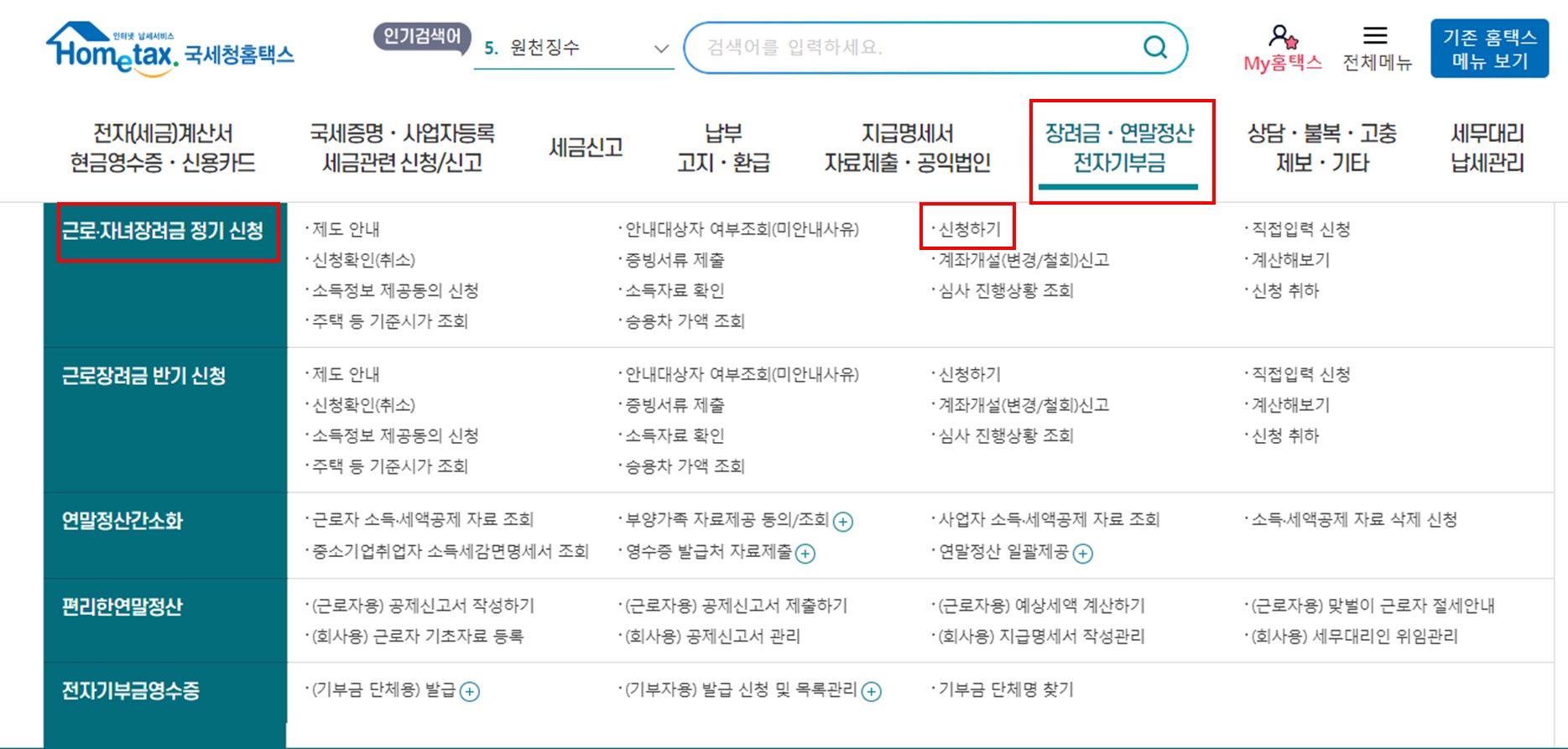 홈택스 접속 후 근로/장려금 신청, 접수