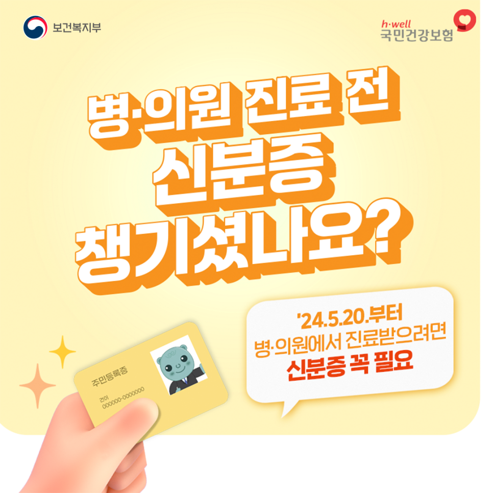 2024년 5월 20일 부터 병원, 의원에서 진료를 받으려면 신분증이 꼭 필요합니다.